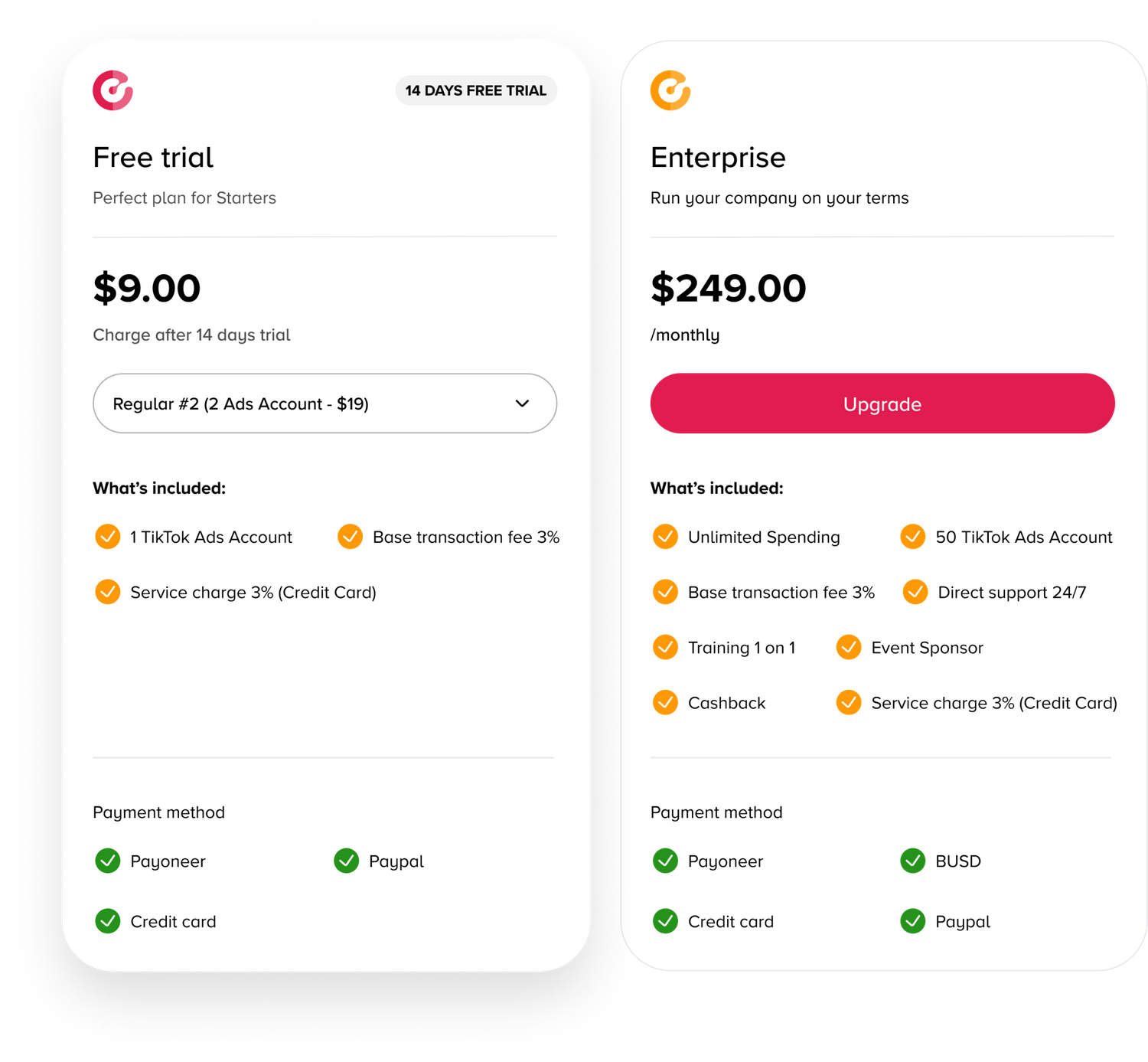14 day trial to use our agency ad account. A new ad account will be created automatically on our platform and you will have 14 days for trial to enjoy our service
